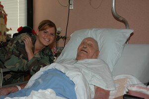 Dec. 27, 2006 38th APS visits VA Hospital in Charleston Despite the fact that 99-year-old Navy veteran Mervin Anderson is bedridden at the Charleston VA Hospital nursing home he perked up and came to a sense of attention as Senior Airman Jacqueline Gordon of the 38th Aerial Port Squadron sang the National Anthem. "He perked up and attempted to sing the