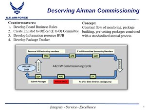 Jan. 2, 2024 CPI team streamlines enlisted to officer commissioning process So, in November 2022, the 442d Fighter Wing process manager, Mrs. Shallyn Troutman, put together a continuous process improvement event to address the issue of inconsistent Deserving Airman Commissioning Boards. She gathered a team of sharp company-grade officers who had been enlisted themselves and