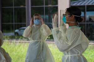 July 17, 2020 JB Charleston Naval Health Clinic prepares for Navy-wide COVID-19 testing As the COVID-19 virus continues to spread around the world, medical professionals at Joint Base Charleston are taking preventative measures in an attempt to slow down the spread.Hospital corpsmen at the JB Charleston Naval Health Clinic are training on how to administer a COVID-19 swab test in order